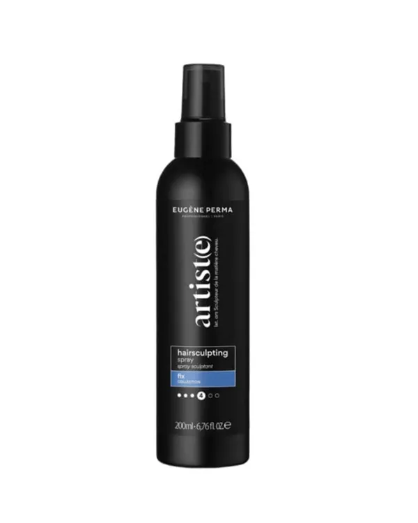 Hairsculpting Spray artist(e) de Eugène Perma Professionnel es un producto escultor, formulado sin gas, que fija el peinado. ¡Su fuerte fijación permite mantener todo tipo de peinado!