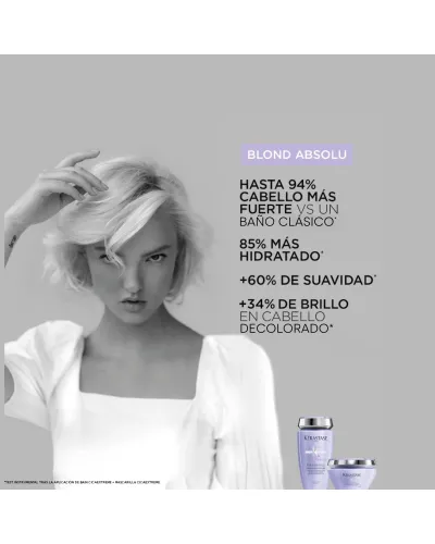 Mascarilla: Luce un rubio perfecto. La mascarilla Masque Ultra-Violet nutre en profundidad el cabello rubio, dejándolo nutrido y reparado. Proporciona un brillo intenso al cabello teñido o decolorado y neutraliza tonos indeseados. Es ideal también para cabellos con canas o totalmente blancos, ya que matiza los tonos amarillos o anaranjados y devuelve la belleza natural de este tipo de cabellos.