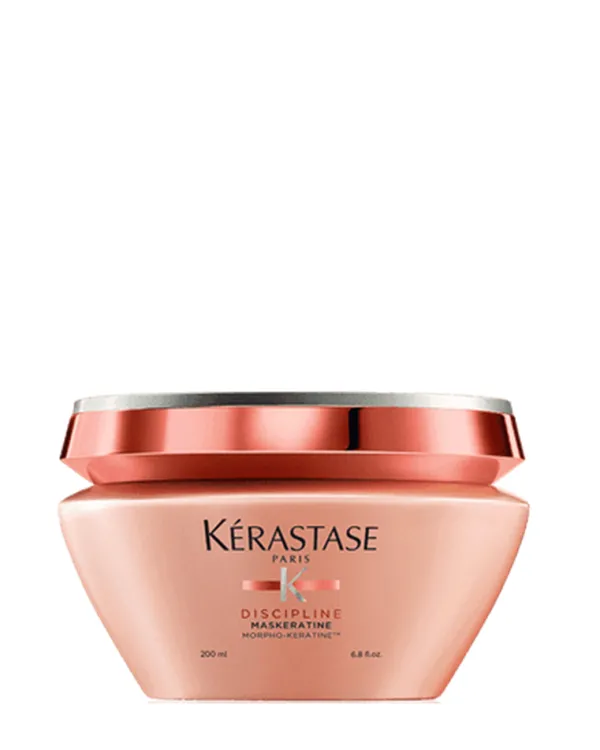Elimina el encrespamiento y controla el cabello más rebelde. La mascarilla Maskeratine de la gama Discipline de Kérastase es un tratamiento en profundidad para eliminar el encrespamiento y la estática, a la vez que domina los cabellos más indisciplinados. El cabello luce extremadamente suave, ligero, nutrido y con control.