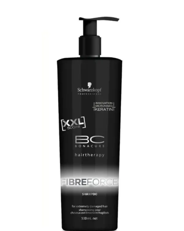 El champú fortificante BC Fibre Force de Schwarzkopf Professional es ideal para cabellos dañados y muy procesados. Su fórmula ligera elimina el exceso de grasa y combina dos complejos que reconstruyen profundamente y sellan cada hebra individualmente.