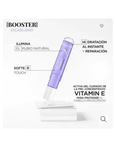 Booster Cicablond es un tratamiento enriquecido con vitamina E para proteger el cabello rubio decolorado y con mechas y aportarle más fuerza: