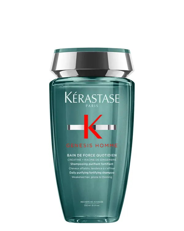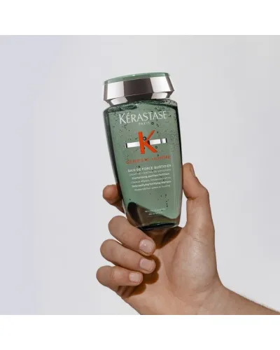 Dale fuerza a tu cabello. El champú Bain de Force Quotidien es un baño de uso frecuente ideal para el cabello masculino debilitado y con tendencia a afinarse, aporta fuerza al cabello y le devuelve su vitalidad. Usado de forma frecuente, el cabello se vuelve más resistente a la rotura y menos propenso al afinamiento.
