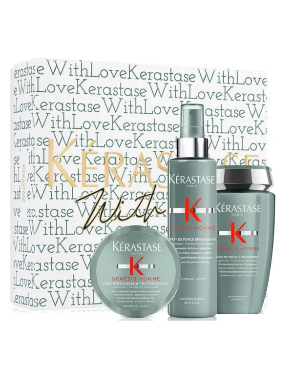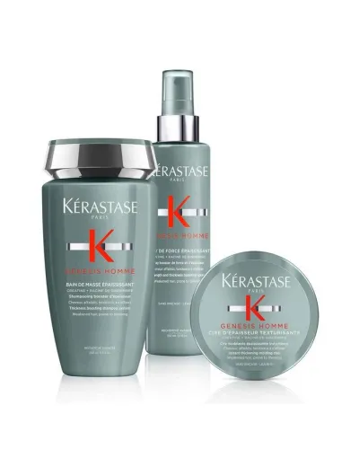 Disfruta de este kit de tres productos de la gama Genesis Homme, ideal para los cabellos debilitados que tienden a caerse. Tratamientos profesionales enriquecidos con raíz de jengibre, creatina y mentol para un cabello más denso, fuerte y resistente.