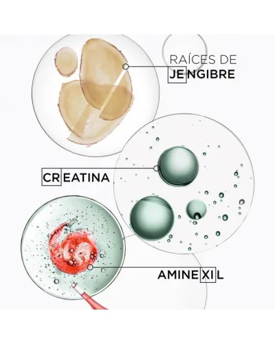 - Engrosa la fibra para fortalecer la masa capilar y conseguir un cabello más denso y grueso.