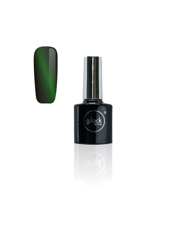 Top Coat ultra brillante sin capa de dispersión que aplicándolo sobre cualquier todo G.Lack by Luxe crea un efecto ojo de ultra brillante sin capa de dispersión que aplicándolo sobre cualquier todo G.Lack by Luxe crea un efecto ojo de gato en color verde.