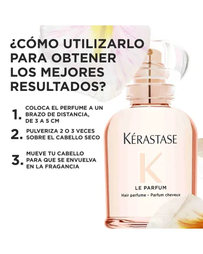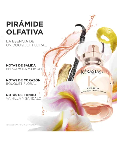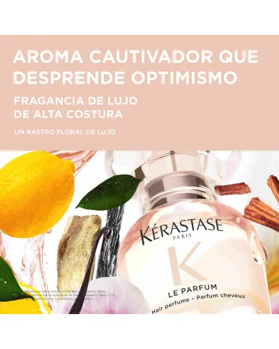 Perfume capilar de aroma cautivador de larga duración que proporciona suavidad y brillo al cabello.
