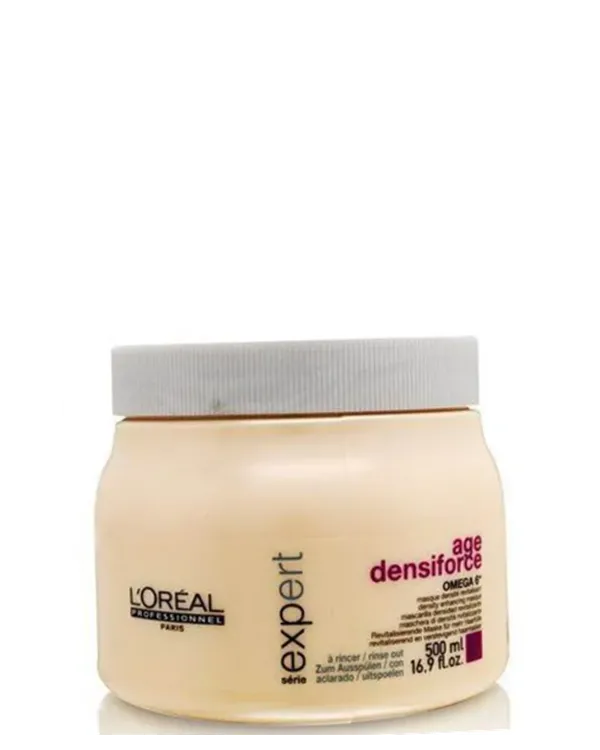Mascarilla Age Densiforce: Aporta densidad, energía y volumen al cabello. Aporta tonicidad, energía y brillo. Tipo de cabello: Cabellos lacios, apagados, con falta de densidad.