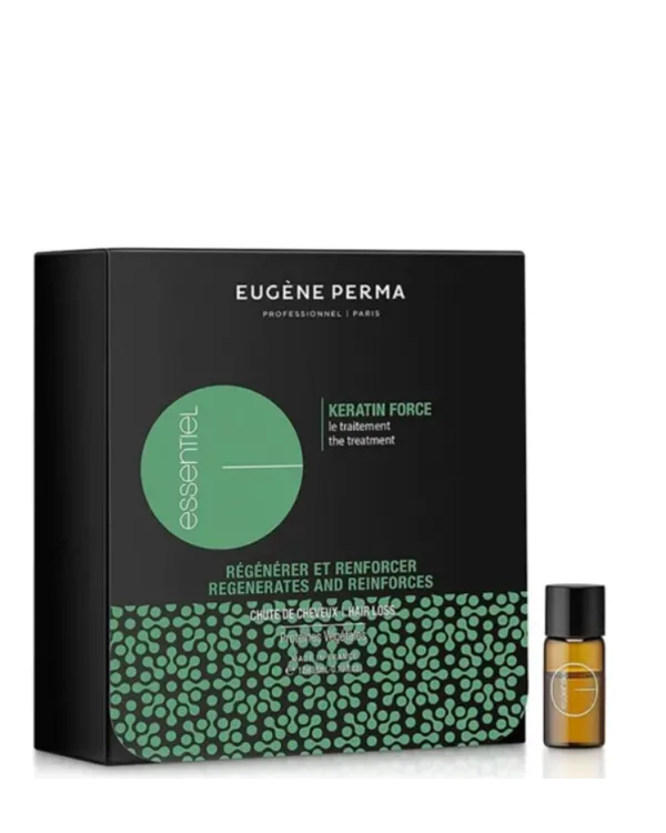 Eugene Perma Keratin Force ampollas que ayudan a estimular la producción natural del cabello. Su fórmula contiene queratina y proteínas vegetales extraídas de los guisantes que tienen propiedades estimulantes y regeneradoras.