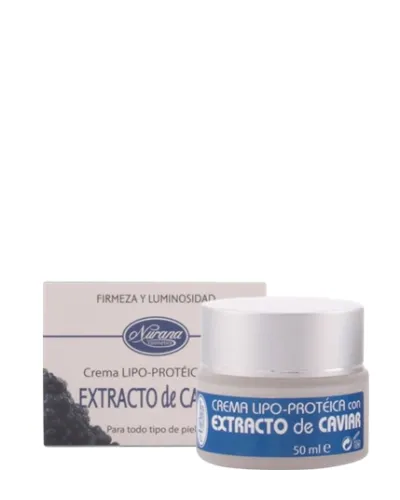 Crema facial 24h de uso diario para todo tipo de pieles. La crema facial Nurana Lipo-proteica con extracto de caviar es una crema muy absorbente y de fácil aplicación. El extracto de caviar es un componente muy valorado en la cosmética moderna por ser un cóctel completo de puras y concentradas sustancias marinas que favorecen considerablemente el proceso de rejuvenecimiento de la piel. Algunos de sus principales beneficios para la piel son: meja la textura y el relieve, aportando firmeza y tonicidad. Regenera e hidrata en profundidad, aporta belleza y luminosidad y tiene un efecto rejuvenecedor.