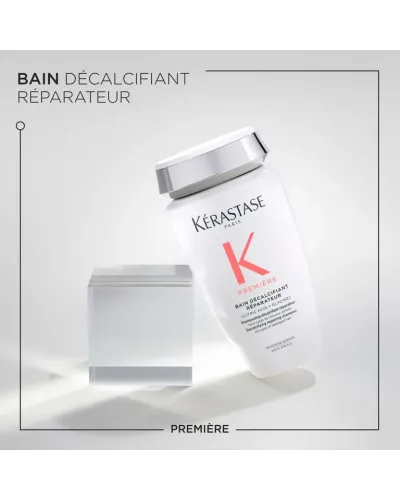 Champú Décalcifiant Réparateur 250ML: Champú reparador descalcificante para cabello dañado. Un champú rico de doble acción que actúa por dentro y por fuera para eliminar el calcio y reparar el cabello dañado. Kérastase Première Bain Décalcifiant Réparateur es un champú descalcificante y reparador para todo tipo de cabello tratado o dañado.