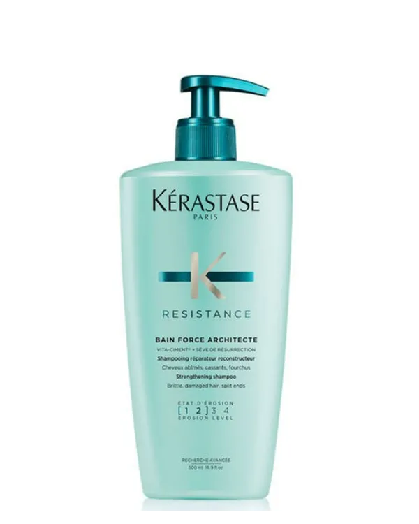 Repara y devuélvele su fuerza a tu cabello. El Bain Force Architecte es un champú de reparación que aporta fuerza y solidez al cabello debilitado, restaurando la materia capilar y revitalizando la fibra desde el interior. Lava de forma suave el cabello y le proporciona ligereza y soltura, permitiéndole así recuperar su movimiento y elasticidad natural. El cabello luce más saludable y con más brillo.