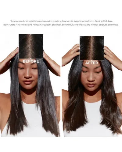 Sérum Cellulaire Nuit: Elimina eficazmente la caspa, regenera e hidrata el cuero cabelludo mientras duermes. El tratamiento intensivo Sérum Cellulaire Nuit actúa durante las horas de sueño para mejorar el microbioma natural y reforzar la barrera protectora del cuero cabelludo, así como hidratarlo y regenerarlo. Además, reduce de forma visible la caspa y actúa contra los microorganismos encargados de su producción para evitar su reaparición futura. Gracias a sus propiedades calmantes, es el producto perfecto para recuperar el confort, incluso en cuero cabelludo sensible, y calma las irritaciones de forma eficaz y duradera. Su textura no grasa y no pegajosa permite una aplicación cómoda sin aclarado.