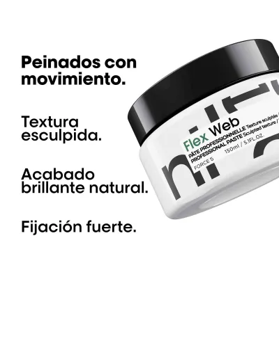 Texturiza y define tu estilo. TNA Flex Web permite crear estilos texturizados y bien definidos con facilidad. Esta pasta fibrosa esculpe tu estilo y aporta más definición a las zonas que más lo precisan, ya que su distribución es realmente sencilla y cómoda. Además, no apelmaza ni deja sensación de rigidez a tu cabello.