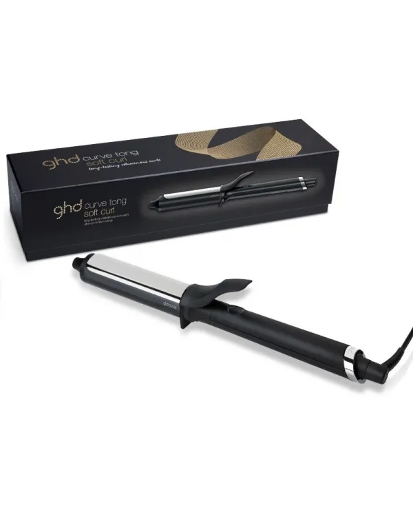 La tenacilla ghd curve® soft curl tiene un barril grande de 32mm que incluye una pinza ergonómica para dar volumen a las raíces y suaves rizos, en el cabello más largo. La punta fría protectora te ofrece una zona segura para sujetar mientras rizas, y el apoyo de seguridad te permite situar la tenacilla de forma segura mientras peinas.