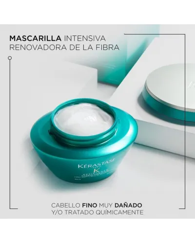 Mascarilla: La primera mascarilla de Kérastase con una textura única que trabaja en el núcleo del cabello. Desarrollada por Kérastase para renovar la fibra capilar de los cabellos gruesos. Tratamiento intensivo para cabello muy castigado y dañado, repara la fibra permitiendo que el cabello se tonifique y revitalize.
