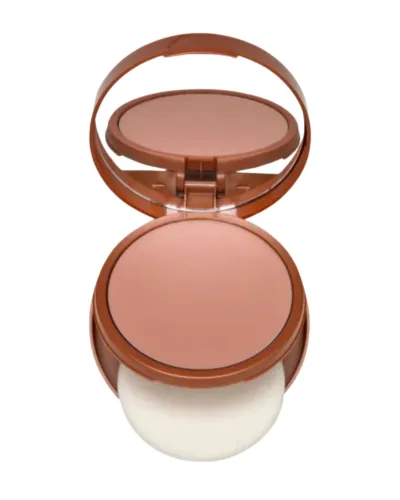 Su textura fina y no grasa se funde con la piel, proporcionando una cobertura uniforme que disimula imperfecciones mientras resiste el sudor. Fácil de aplicar y con estuche que incluye espejo, es ideal para mantener un tono perfecto y protegido durante todo el día.