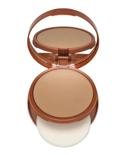Su textura fina y no grasa se funde con la piel, proporcionando una cobertura uniforme que disimula imperfecciones mientras resiste el sudor. Fácil de aplicar y con estuche que incluye espejo, es ideal para mantener un tono perfecto y protegido durante todo el día.