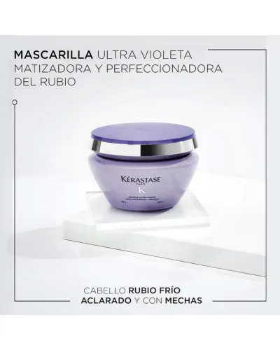 Ideal para cabellos rubios decolorados que buscan neutralización. Esta mascarilla violeta penetra en la fibra quitando los tonos cobrizos y amarillentos no deseados, además de nutrir y restaurar la fibra sensibilizada. La potente combinación de ácido hialurónico y flor de Edelweiss calma protegiendo el cabello de la oxidación diaria y de la polución. Esta mascarilla puede utilizarse una ves a la semana, o tantas veces como sea necesario hasta neutralizar los tonos cobrizos y amarillentos y conseguir un rubio luminoso y fresco.