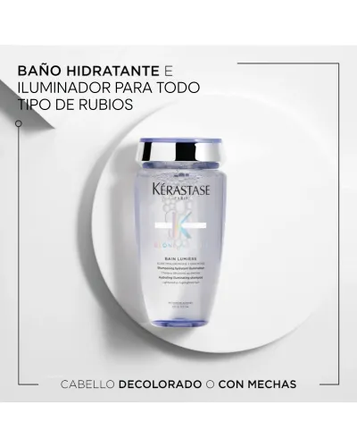 Este champú con ácido hialurónico es una ligera fórmula ideal para cabellos decolorados, con mechas y grises. La fórmula de limpieza suave alivia e hidrata el cabello de la raíz a las puntas, dejando una sensación ligera e iluminando los tonos rubios. Detoxifica el cabello de la contaminación. Enriquecida con una combinación de ácido hialurónico y flor de Edelweiss, la fórmula tiene altas concentraciones de antioxidantes para prevenir daños y proteger la fibra. El ácido hialurónico hidrata intensamente el cabello rubio, suavizando la fibra para un tacto uniforme a lo largo de las mechas del cabello. El cabello está preparado para ser tratado, luminoso y nutrido hasta las puntas.