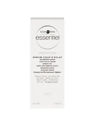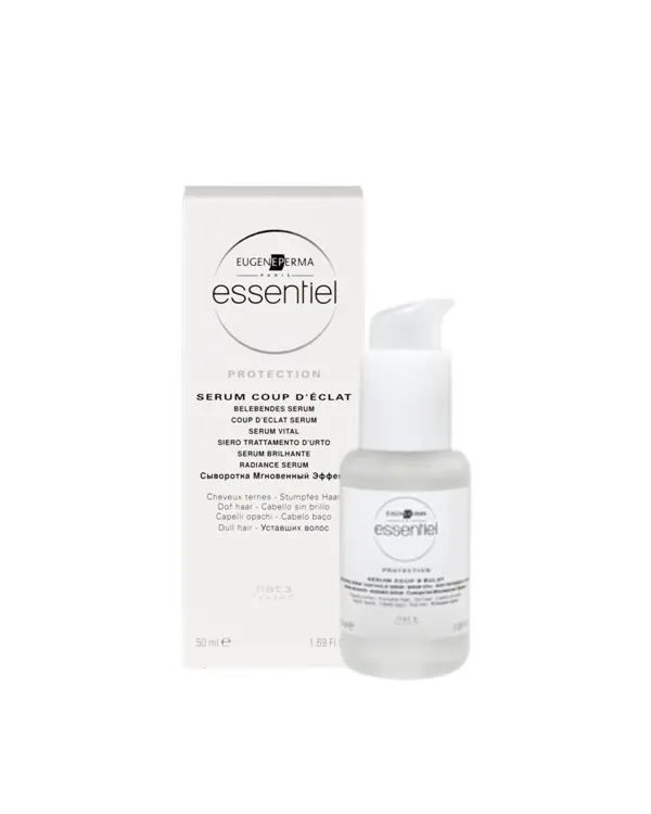 Serum Coup D'Éclat de Essentiel es un sérum reparador de puntas de uso frecuente para todo tipo de cabellos. Proporciona una barrera contra los rayos UVB dañinos para la fibra.